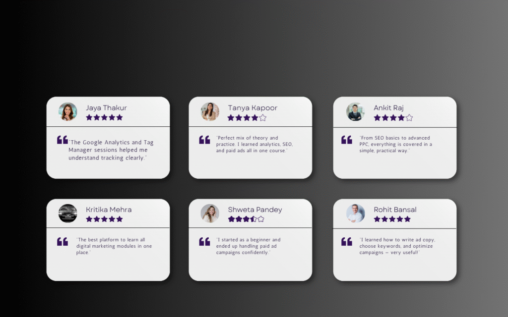 We focus on practical training, live projects, and certification preparation to help you build a successful digital career.